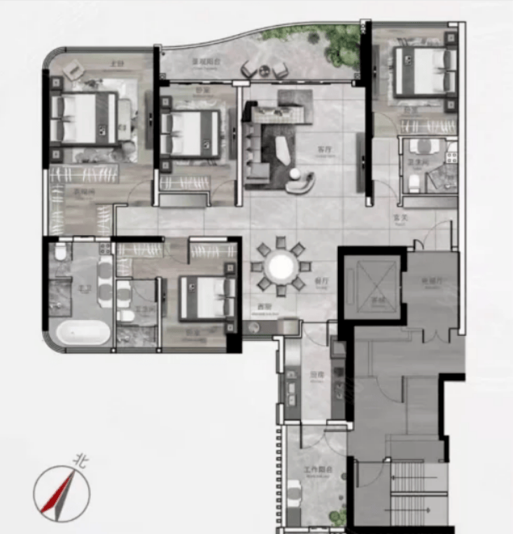 两个次卧的面积也十分可不雅,既能够做为儿童房,也能够做为书房或客房利用。矫捷的空间结构,让这个户型可以或许顺应分歧家庭布局的变化。无论是二胎家庭,仍是需要居家办公的SOHO一族,都能正在这里找到适合本人的糊口体例。全屋精拆交付,选材讲求,工艺精深,每一个细节都表现了开辟商的存心。从地板的材质到灯具的格式,从橱柜的颜色到卫浴的品牌,无一不颠末细心挑选,只为给您呈现一个完满的家。139平方米的户型,虽然面积适中,但正在功能分区和空间操纵上却做到了极致。它既满脚了三口之家或四口之家的根基栖身需求,又保留了必然的舒服度和奢华感。对于预算无限但又不肯降低糊口质量的购房者来说,这是一个很是务实的选择。正在广州幸福湾,即便是入门款,也能让您感遭到豪宅的栖身体验,一段夸姣的改善糊口之旅。若是说139平方米是精美的入门,那么233平方米的四房两厅三卫户型则是广州幸福湾的从力担任,专为逃求更高糊口质量的家庭量身打制。这个户型采用了2梯2户的设置装备摆设,私密性更强,上下楼愈加便利,卑贱豪情不自禁。南北通透的款式,是其最大的卖点之一。南北对流的设想,让江风能够穿越于室内,带走湿气和闷热,连结室内空气的清爽取干爽。正在广州炎热的夏日,这种天然的空调结果,让人倍感舒服。客堂取餐厅一体化设想,构成了一个宽阔的勾当空间。无论是家庭,仍是伴侣来访,都能轻松容纳,不会显得拥堵。南向的L型阳台是这个户型的魂灵所正在。阳台长度跨越7米,连通客堂和一间次卧,视野极为宽阔。您能够将阳台一分为二,一半做为糊口阳台,用于晾晒衣物;另一半则安插成休闲区,摆上桌椅茶具,闲暇时品茶不雅景,看珠江水慢慢流淌,感触感染岁月的静好。这种功能分区的巧妙设想,让阳台的价值获得了最大化操纵。三个卫生间均做了干湿分手处置,提拔了利用的舒服度和卫生程度。此中两个是从套卫浴,别离办事于从卧和长辈房。长辈房带卫生间的设想,充实考虑了老年人的糊口习惯和需求,削减了日常起居的干扰,表现了对长辈的关爱取卑沉。最小的房间面积也有9平方米,完全能够成书房、儿童玩具房或者健身室,满脚家庭的多元化需求。厨房空间宽敞,操做台面充脚,脚以应对大师庭的烹调需求。餐厅取厨房相邻,传菜便利,动线流利。整个户型的动静分区合理,卧室集中正在内侧,远离客堂的喧哗,了歇息的恬静取私密。无论是三代同堂的大师庭,仍是喜好热闹的仆人,都能正在这里找到属于本人的舒服角落。精拆尺度更是升级,选用了国际一线品牌的建材和设备,彰显出仆人的不凡品尝。255平方米的四房两厅三卫户型,有两种款式可选,矫捷性极高。其客堂面宽达到了惊人的5。2米,搭配全景落地窗,将江景毫无保留地引入室内。坐正在沙发上,珠江的美景尽收眼底,仿佛置身于一幅流动的画卷中。从卧套间面积跨越20平方米,带有270度不雅景飘窗,视野无死角。卫浴内配备了浴缸,忙碌一天后,泡个热水澡,看着窗外的江景,所有的委靡城市烟消云集。厨房旁边设有一个的储物间,这是很多户型所不具备的豪侈设置装备摆设。家里的杂物、行李箱、换季物品都能收纳此中,让房间一直连结整洁清新。动静分区设想合理,卧室位于内侧,不受客堂勾当干扰,很是适合多代同堂的家庭栖身。